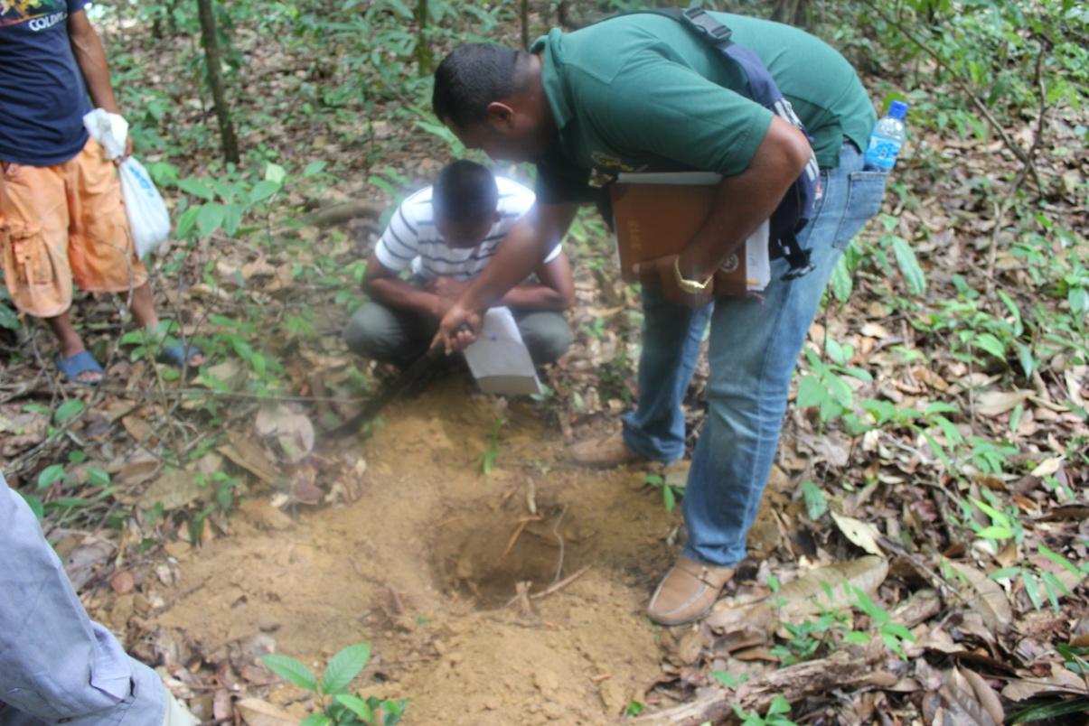 Mr. Beecham from NAREI with Toshao of Manawarin and some villagers getting a sample of soil for testing.